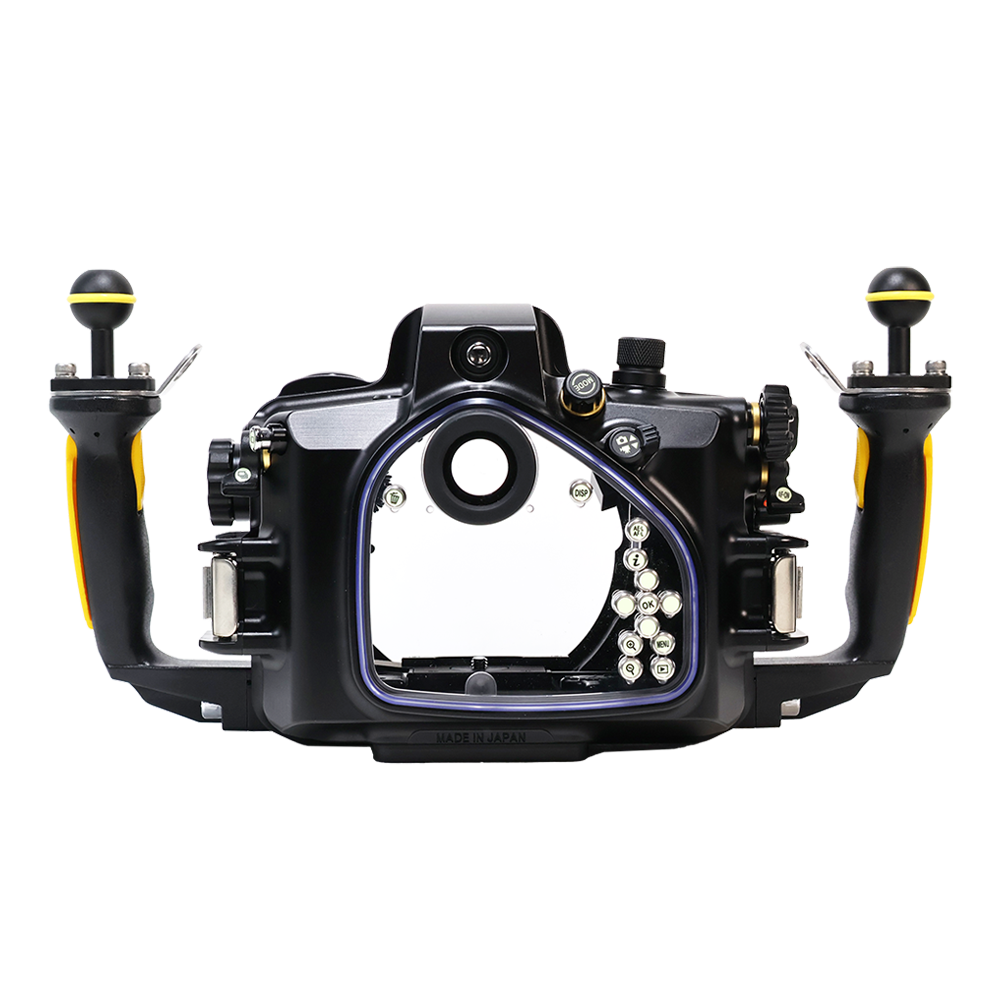 水中撮影で頻繁に使用するメイン電子ダイヤルとサブ電子ダイヤル2を素早く操作できます。 動画撮影もグリップを握ったまま操作可能です。グリップを握ったまま水中動画を撮影できるため、シャッターチャンスを逃しません。