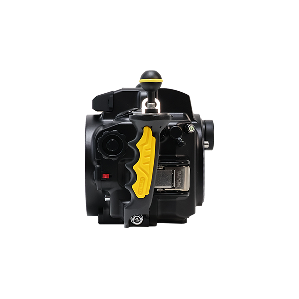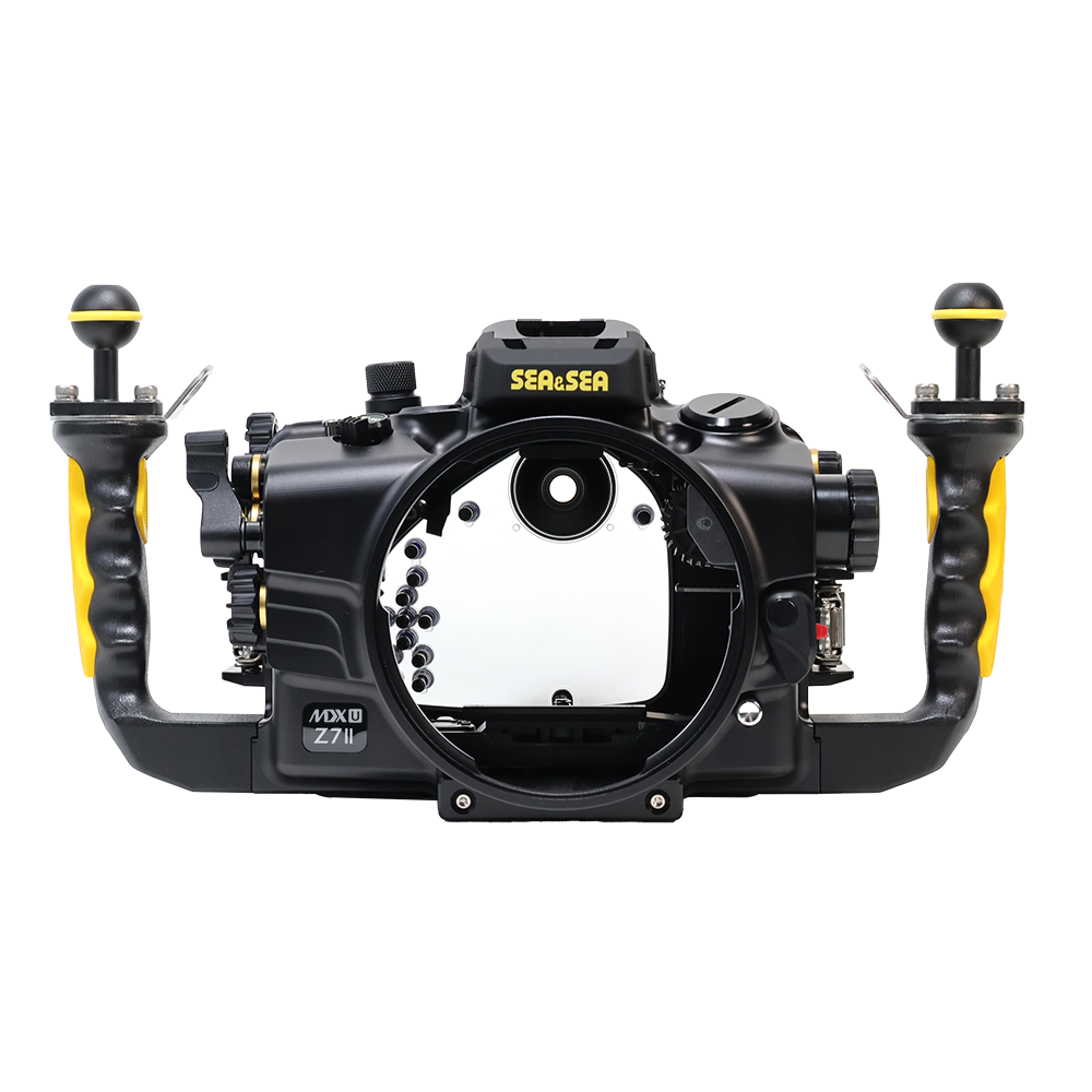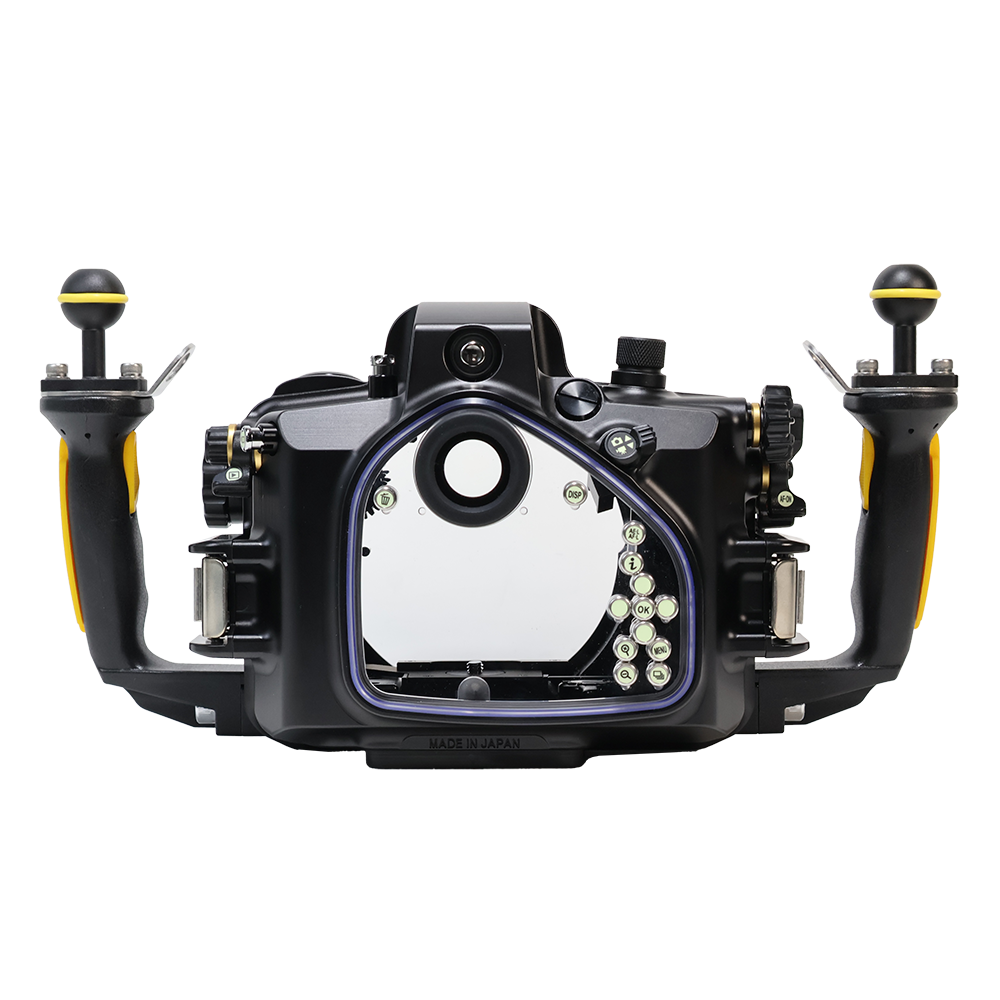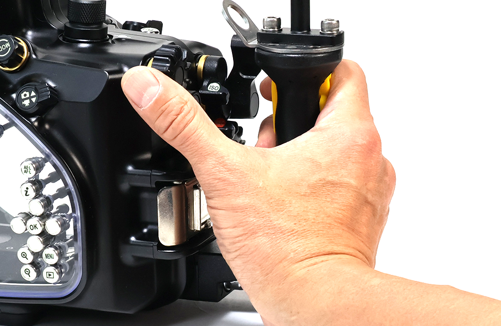 水中撮影で頻繁に使用するメイン電子ダイヤルとサブ電子ダイヤル2を素早く操作できます。 動画撮影もグリップを握ったまま操作可能です。グリップを握ったまま水中動画を撮影できるため、シャッターチャンスを逃しません。